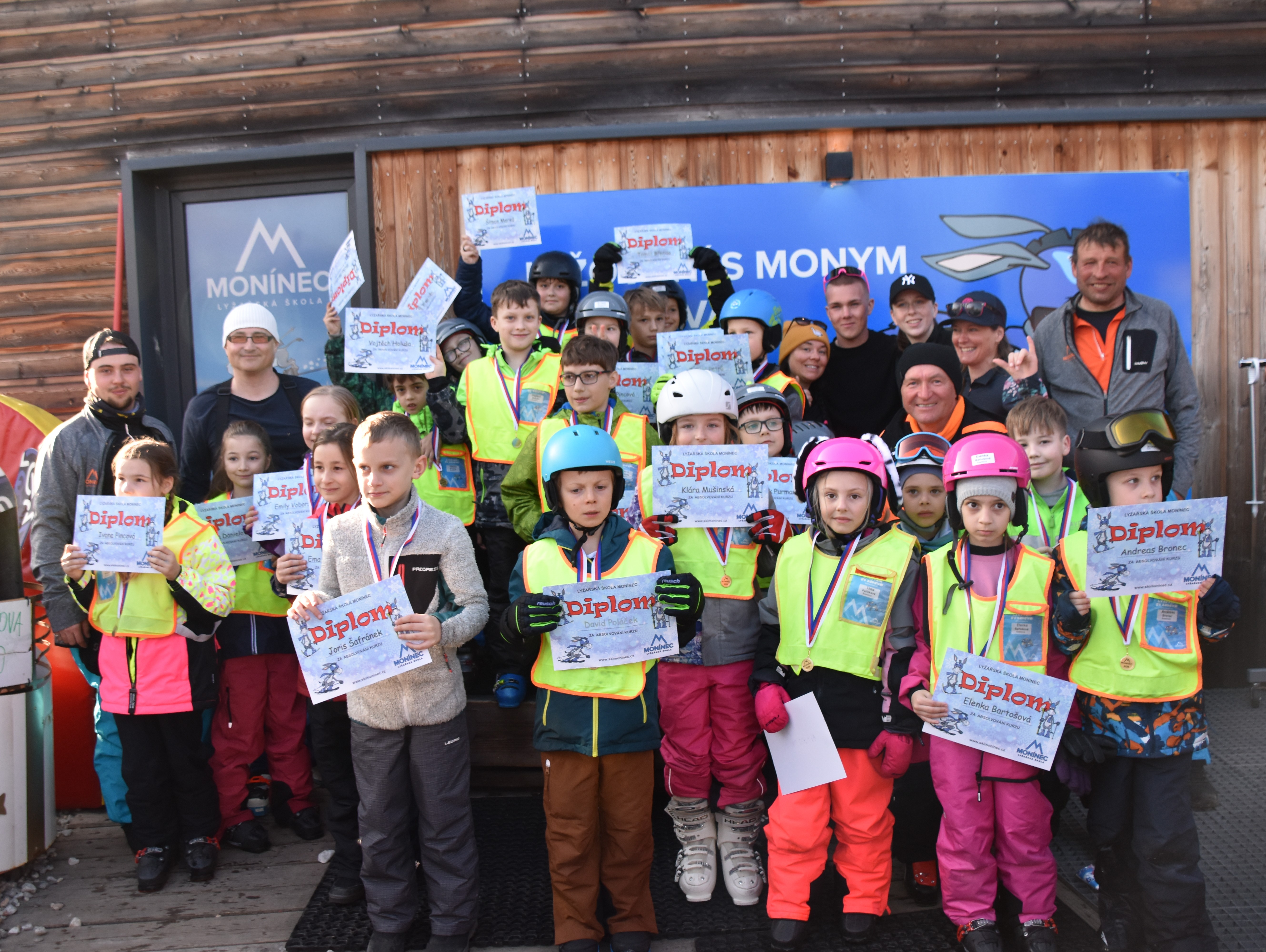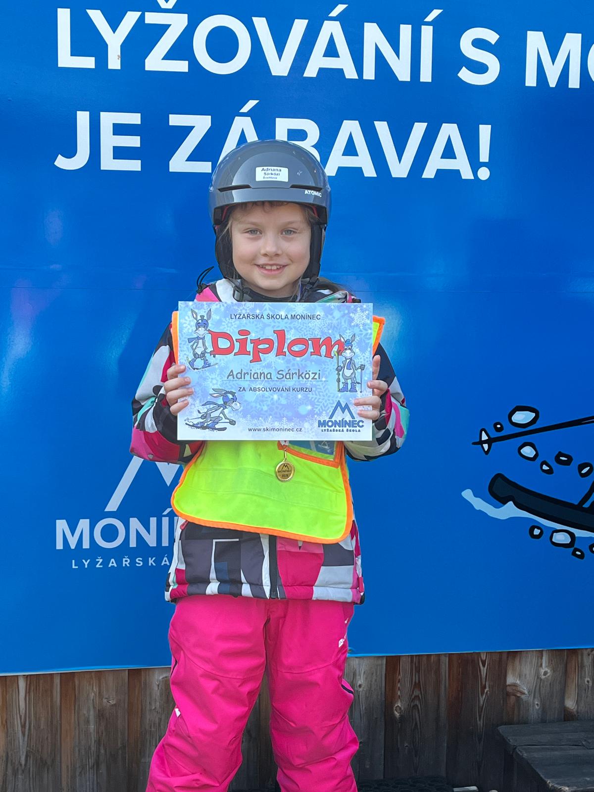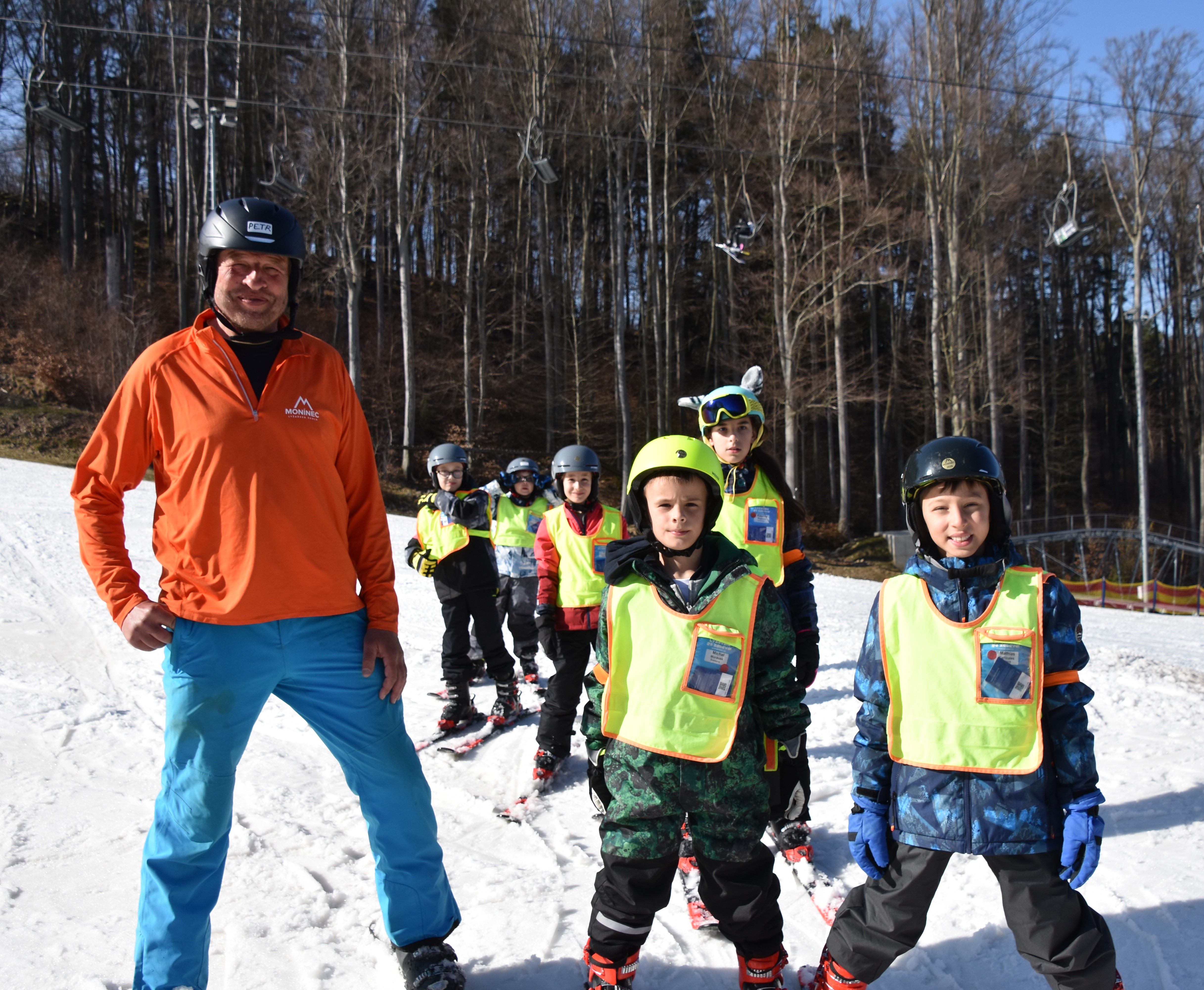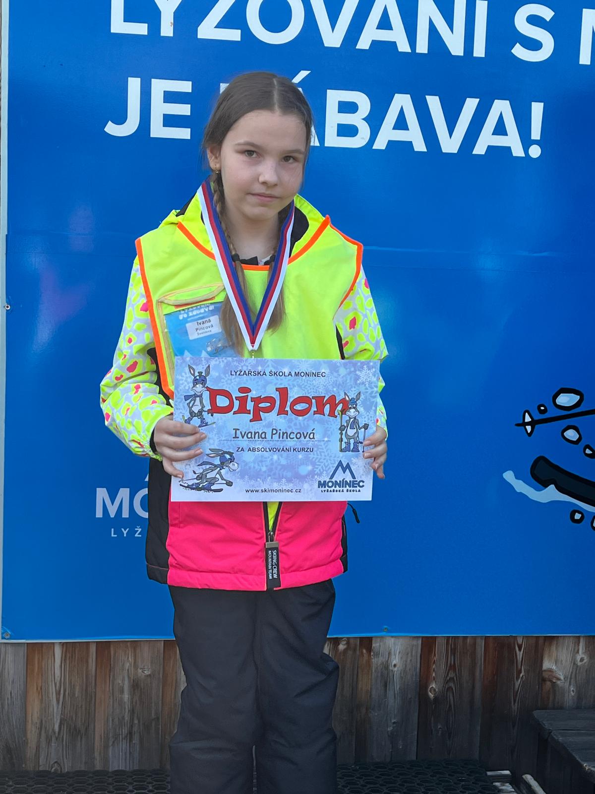 Naši žáci se již pátým rokem účastnili lyžařského výcviku ve středisku Monínec. Stejně jako minulé ročníky i tentokrát to byl týden, na který budeme všichni dlouho vzpomínat. Pod vedením trpělivých a zkušených instruktorů se děti učily vše od úplných začátků, až po zdokonalování techniky. Někteří malí sportovci stáli na lyžích poprvé a zkoušeli udržet rovnováhu, brzdit nebo zvládnout jízdu na vleku. Ti zkušenější se zase s chutí pouštěli do rychlejší jízdy a pilovali oblouky. Ačkoliv venku panovalo téměř jarních 15 stupňů, sníh na sjezdovce vydržel. Nebyla zima, podmínky byly příjemné a lyžování jsme si opravdu užili. S úsměvem, nadšením a někdy i s trochou té zdravé nervozity, která k učení nových věcí patří. Poslední den v pátek jsme se rozloučili s našimi skvělými instruktory. Na památku jsme dostali diplomy a medaile, které nám budou připomínat, jak jsme se během týdne zlepšili. Atmosféru ještě zpříjemnilo, že se na nás přijeli podívat rodiče a některé z nás po skončení výcviku rovnou odvezli domů. Všichni jsme se loučili s pocitem, že jsme zde prožili něco výjimečného. Domů jsme si odvezli nejen nové dovednosti, ale i spoustu krásných zážitků, které si budeme dlouho pamatovat. Lyžařský výcvik se opět stal jednou z nejoblíbenějších akcí roku a již se těšíme, co přinese ten příští.