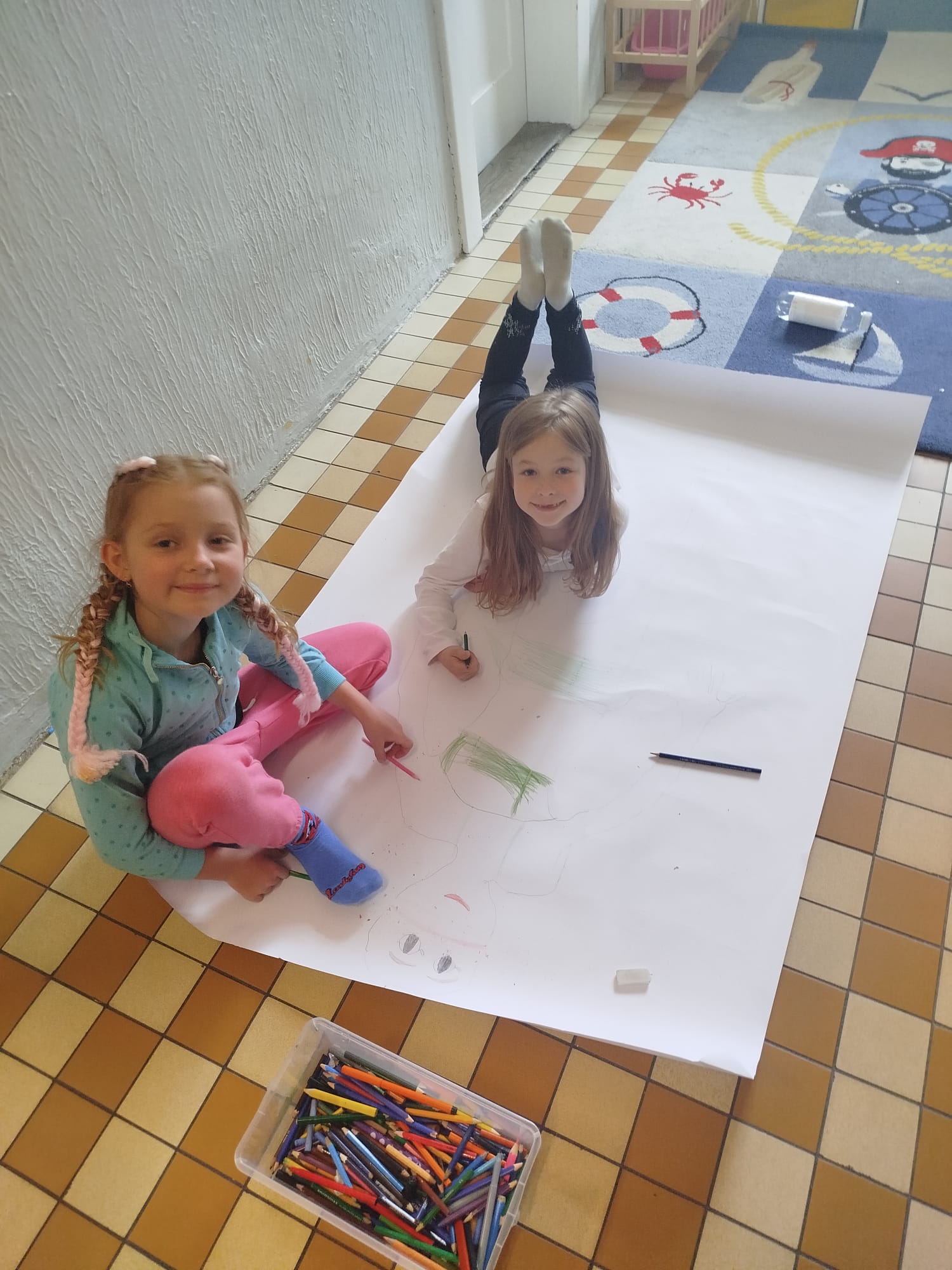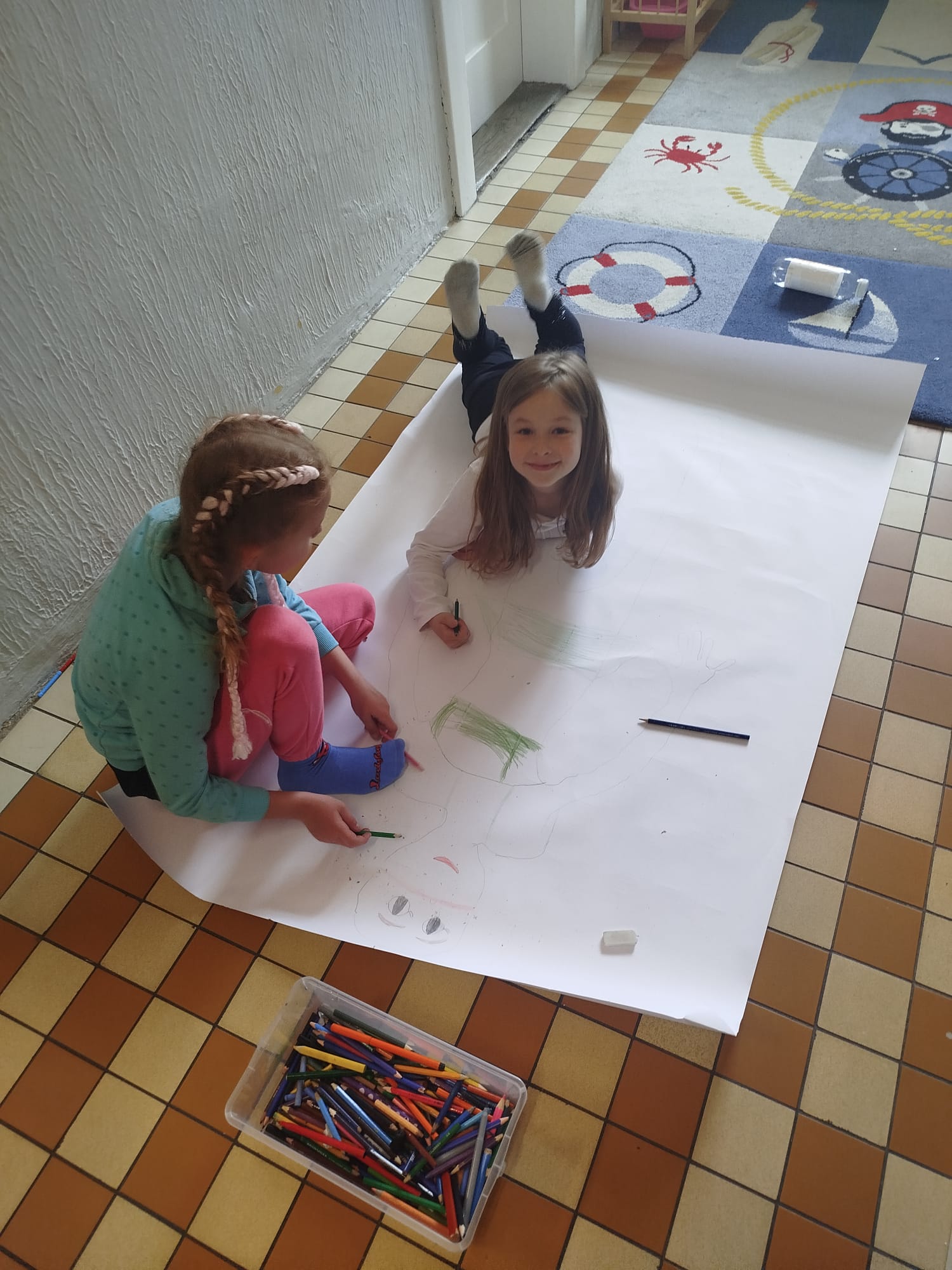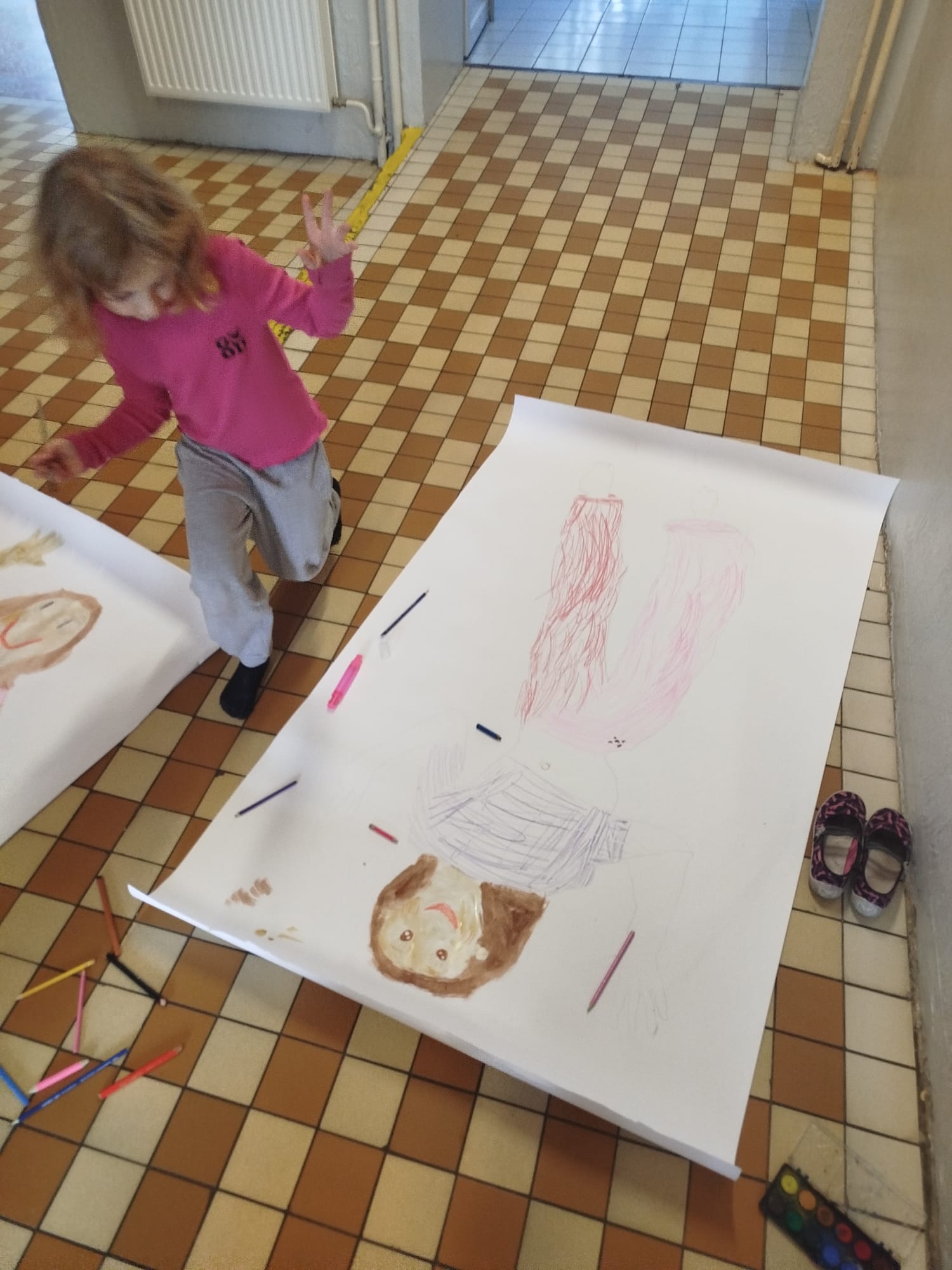 Malování postavy v životní velikosti - skupinová práce ve školní družině