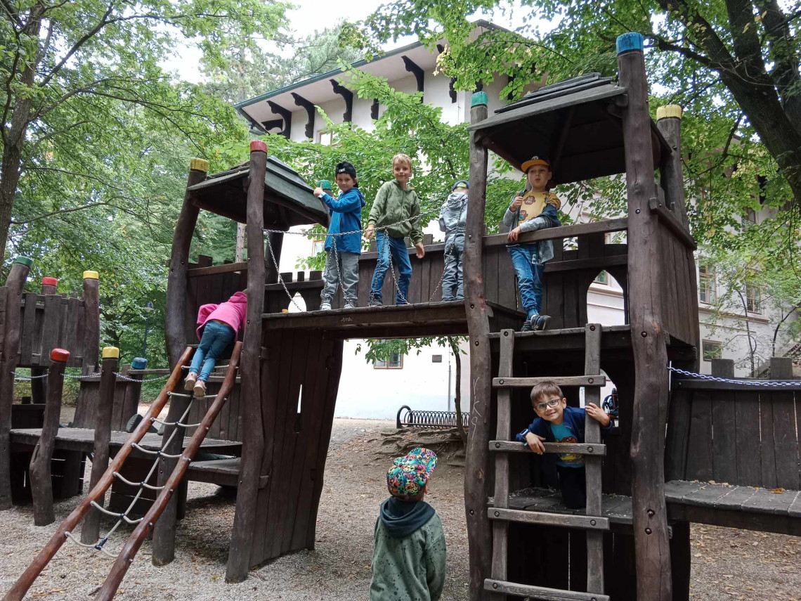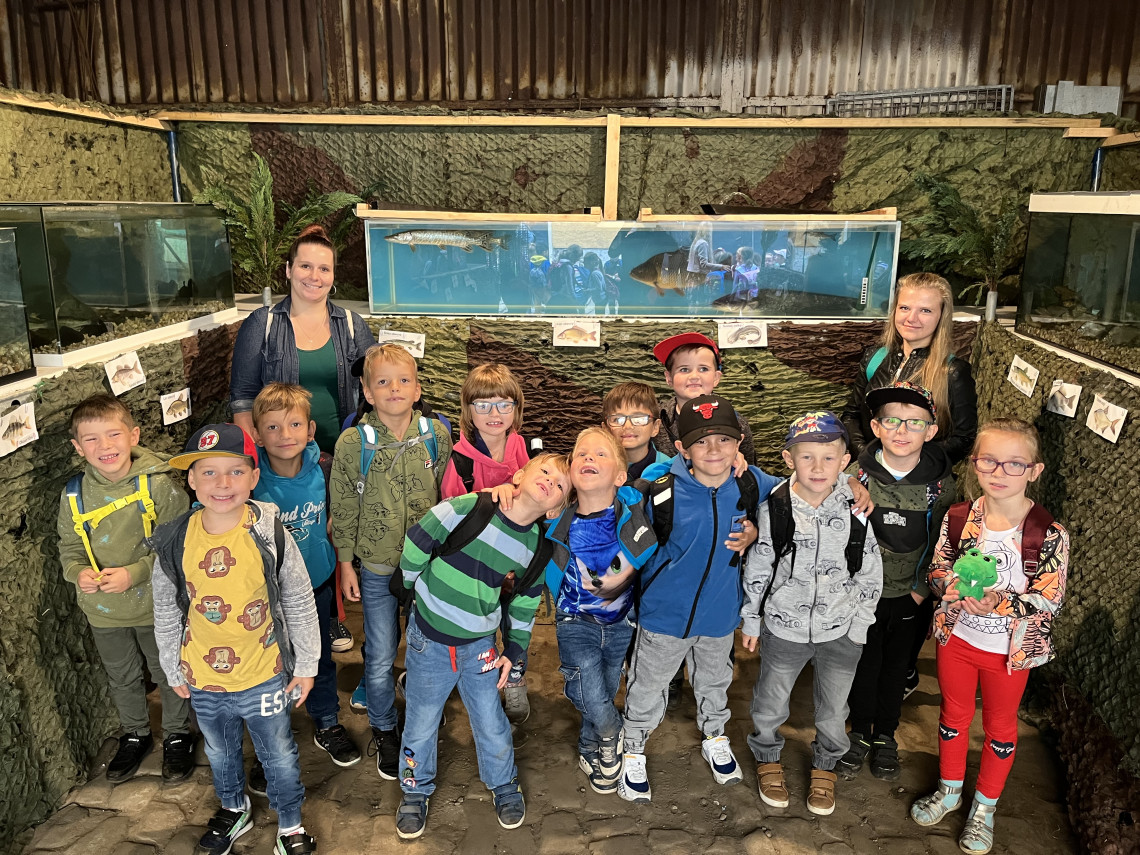 Náš první společný výlet jsme započali exurzí v Českém rybářském svazu v Táboře. Viděli jsme různé druhy ryb v akváriiích, fotografie rybníků v okolí a jejich výlovů. Cestou zpět jsme se prošli Holečkovými sady a zastavili se na hřišti.