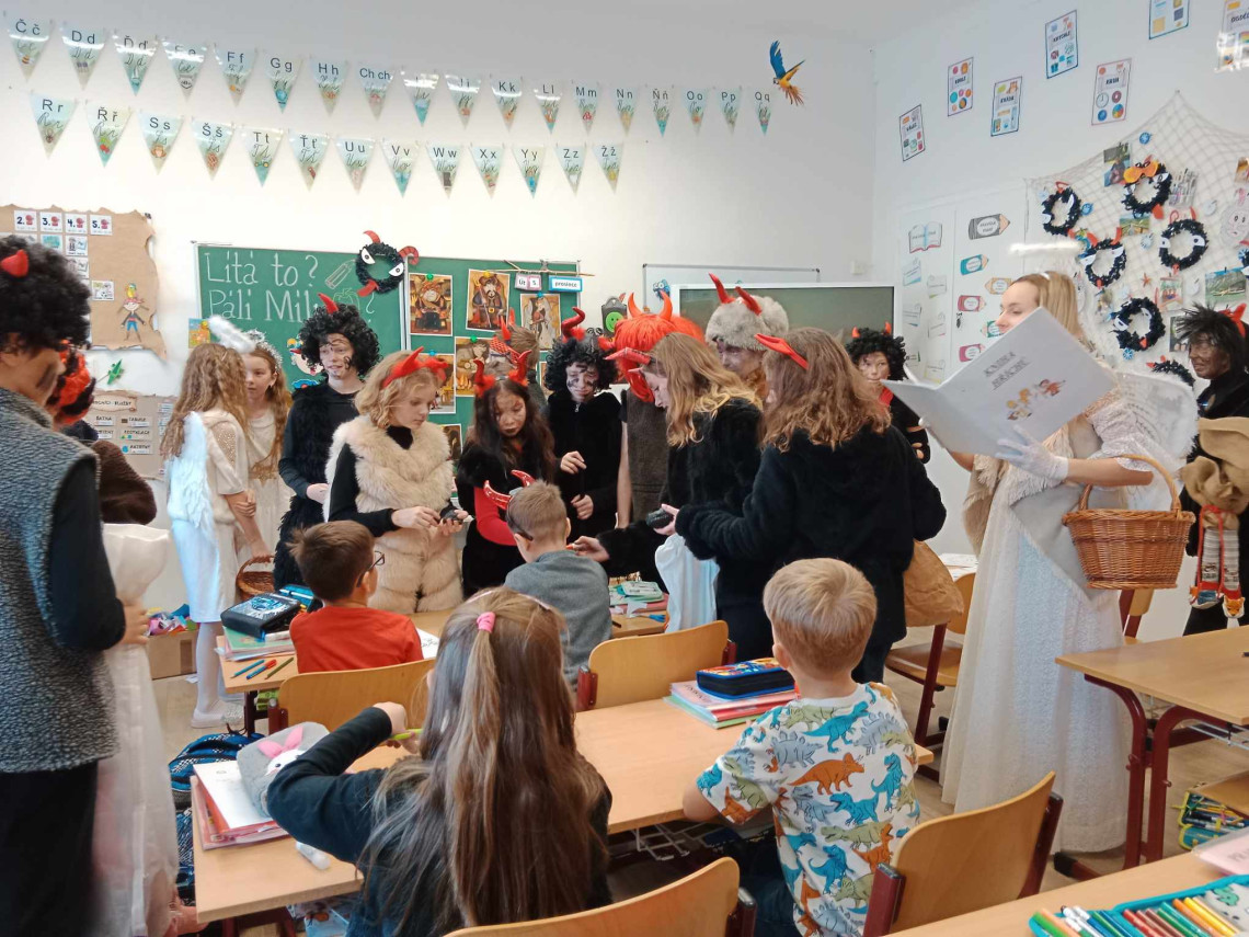 Dne 5. 12 . nás ve škole navštívil Mikuláš s tlupou čertů a andílků. Moc dobře věděli o našich lumpárnách, ale protože jsme správná parta, nikoho z naší třídy neodnesli.