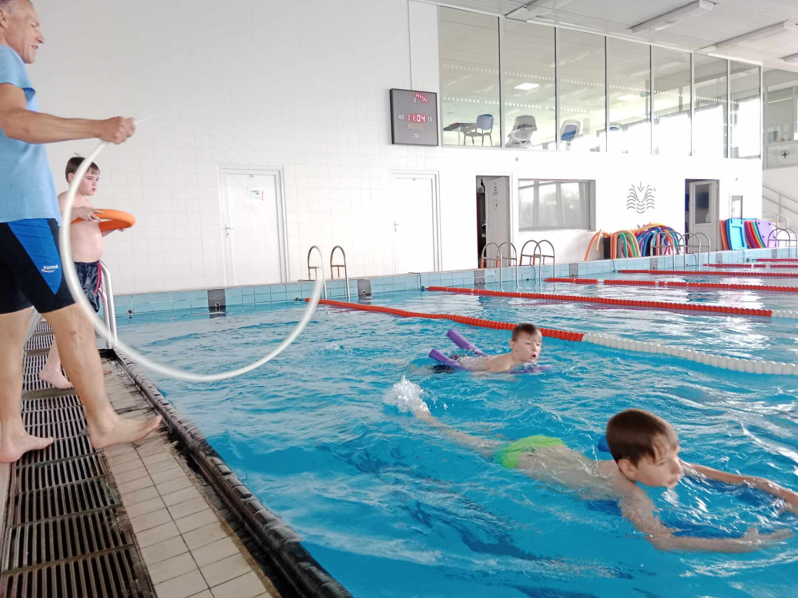 Od března do května jsme navštěvovali plavecký stadión v Táboře, kde jsme se účastnili výcviku a zdokonalovali jsme se v plaveckých dovednostech.