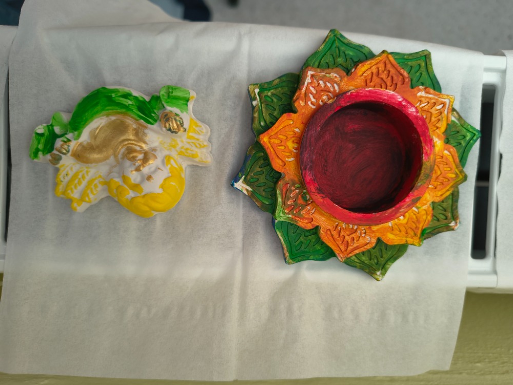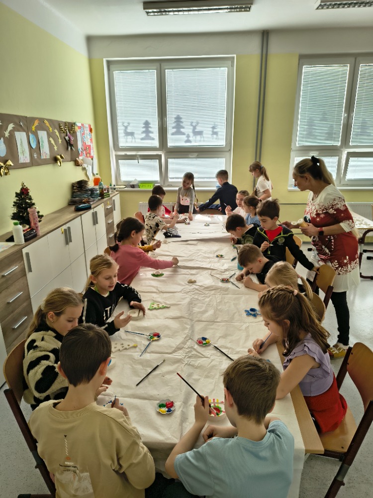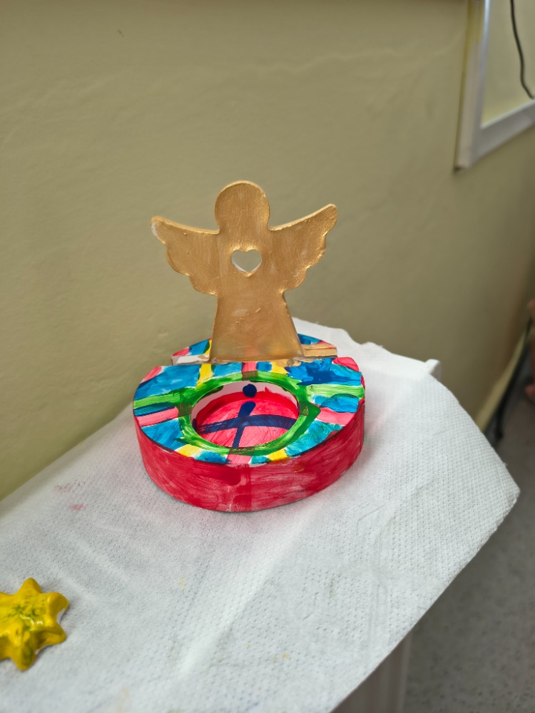 V předvánočním čase si děti vytvořily v červeném a zeleném oddělení svícny a ozdoby z keramiky.